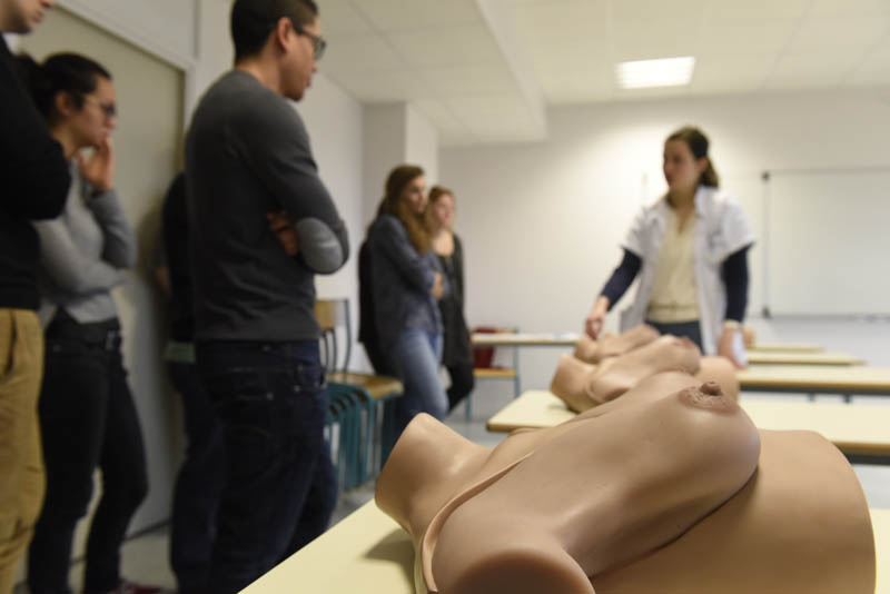 - Simulation technique, avec la création d’un espace de mannequins de haute-fidélité pour l’entra?nement à l’accouchement et à la fibroscopie bronchique et, depuis cette année, l’utilisation de mannequins de basse-fidélité pour l’entra?nement aux gestes de base, particulièrement à l’examen intime pelvien et mammaire. Une mise en commun avec la Faculté de Médecine Lyon Est devrait, à terme, permettre aux étudiants d’aborder la vingtaine de gestes de base indispensables sans préjudice pour les patients et selon des protocoles spécialement con?us ;